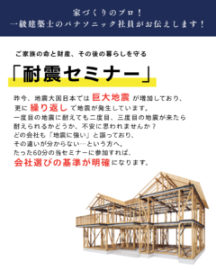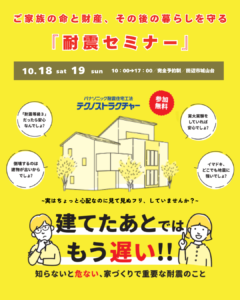【10/18‐19開催】建てた後ではもう遅い!ご家族の命と財産、その後の暮らしを守る「耐震セミナー」in 田辺市城山台2025.10.06