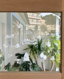 入口のドアにもクリスマスシールをぺたぺた❄️