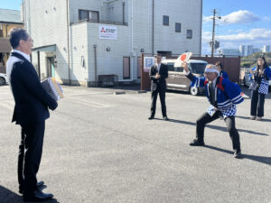 先日、パナソニックの伝統行事「鯉の滝登り」のみなさんが会社に来てくださいました!