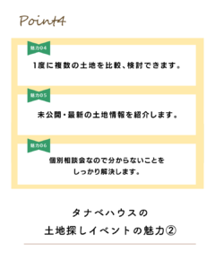 今回ご案内する 土地選び 個別相談会 in タナベハウス 、下記の日程で開催いたします。