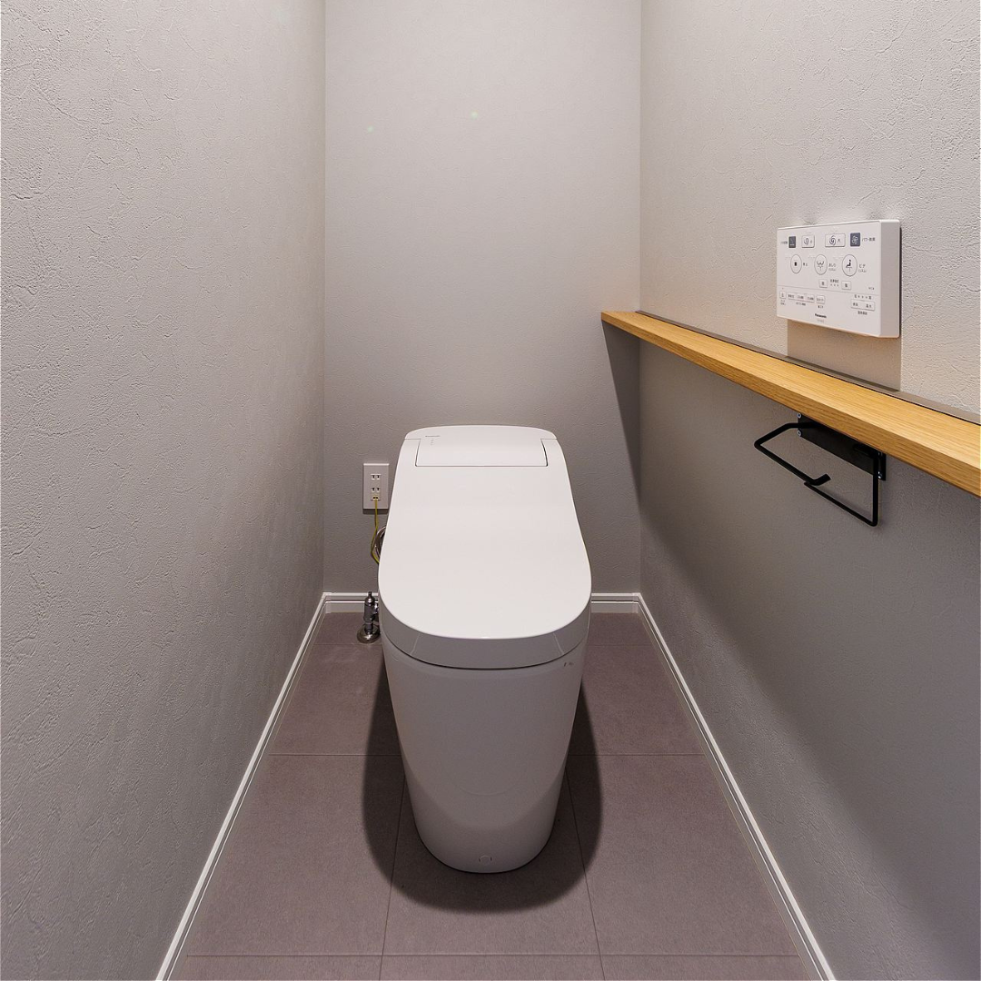 落ち着きと上品さが共存する、グレートーンのトイレ空間 -
