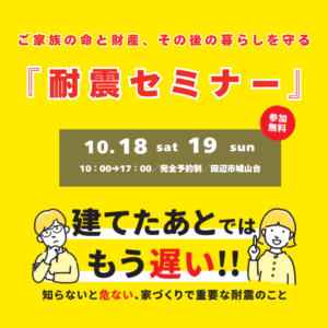 【10/18‐19開催】建てた後ではもう遅い!ご家族の命と財産、その後の暮らしを守る「耐震セミナー」in 田辺市城山台