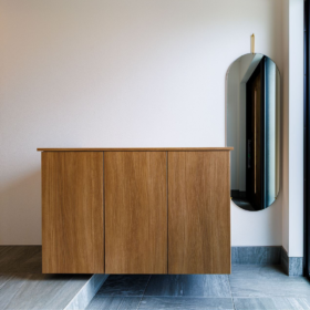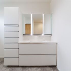 忙しい朝でもストレスなく使える幅広洗面化粧台