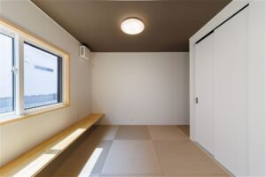 落ち着いたニュアンスカラーの畳が和の雰囲気を残しつつ、インテリアにも馴染む