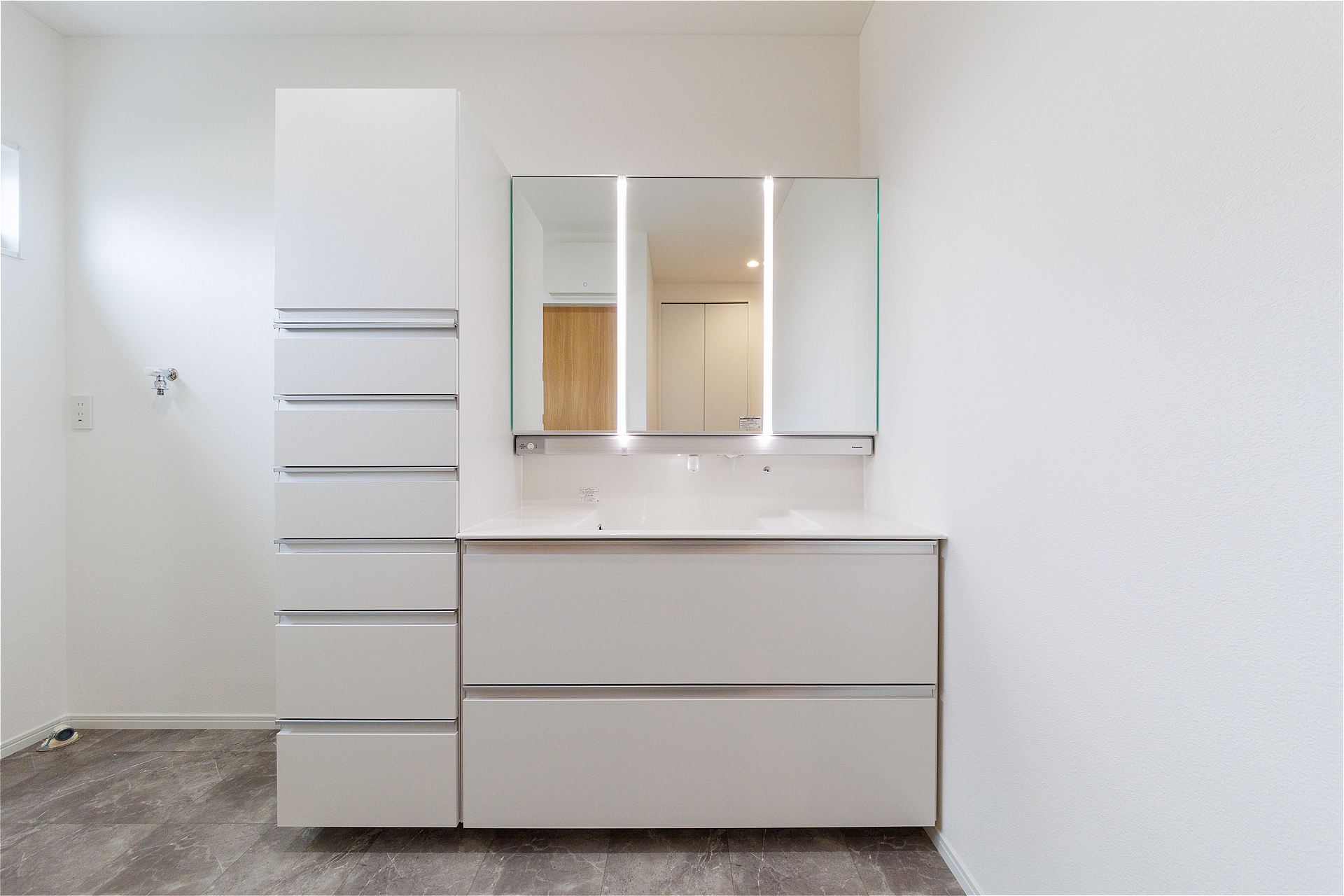 忙しい朝でもストレスなく使える幅広洗面化粧台 -